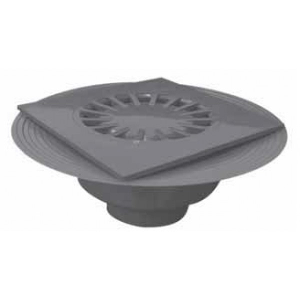 Caldereta sifónica vertical PVC 15x15, salida a tubo PVC de diámetro 75-50. Ideal para terrazas de medio caudal de agua.