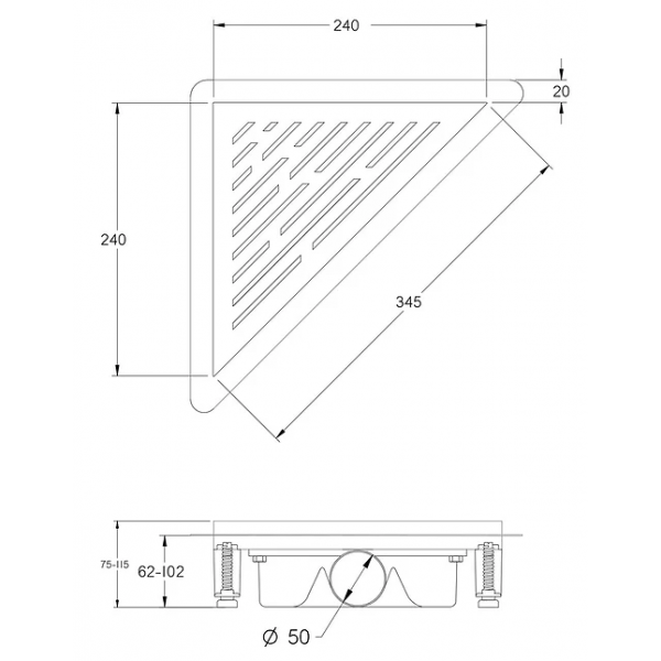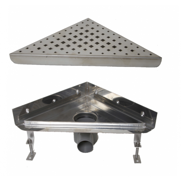 Sumidero de esquina Acero Inox. Con válvula ducha DN 50 – 360º . incluye manguito unión junta labial para su instalación.