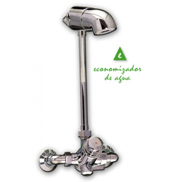 Modelo que consta de grifo mezclador de cierre automático temporizado y rociador para ducha con tubo de unión entre ambos. modelo Deco sistema estándar