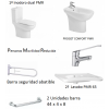 PROGET. Conjunto imovilidad reducida compuesto: 1 Inodoro Dual Proget confort, 1 cisterna cta para Proget, 1 asiento inodoro Proget duroplast, 1 Bide proget confort, 1 lavabo PMR 65 con orificio grifo, 1 barra apoyo abatible, 1 Grifo lavabo medicinal, 1 sifon c/ valvula cromado, 2 manillón apoyo