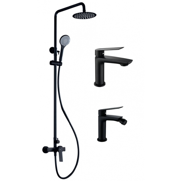 Conjunto tres monomando, ducha exterior - Lavabo - Bidét, serie Luxor Negro Mate