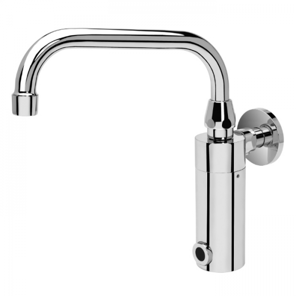 Grifo electrónico lavabo mural grifdeco CE06 B. Se suministra en versión 6v, fabricado en latón cromado dispone de electroválvula con sensor electrónico de infrarrojos, Conexión mediante rosca macho 1/2". Alimentación por bateria de litio 6v dentro del grifo. Presión de trabajo 0.5 a 8 bar- Caudal 7.5 litros / minuto a 3bar - Temperatura recomendada de trabajo entre 5ºC a 70ºC