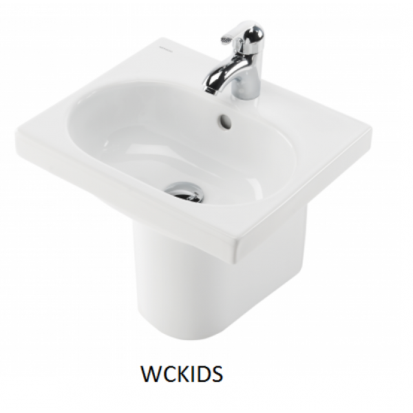 WCKIDS. lavabo infantil con semipedestal 43 centimetros, pertenece a una serie creada por Unisan pensada exclusivamente para los niños, en la que nos permite elegir el color de los complementos y dar un aire muy alegre,. Ideal para colegios y espacios infantiles