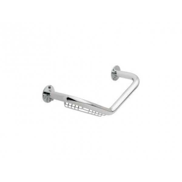 Barra de ayuda y apollo con jabonera doble, dimensiones 45.5 x 13 x 13, material utilizado para su fabricación latón cromado . El proceso de doblado garantiza que el diámetro sea uniforme en las curvas. Diametro exterior 2.5ctm. acabado en cromado. MDBAPAC53