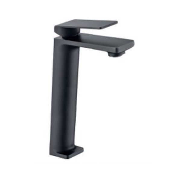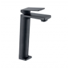 Monomando Lavabo alto serie Fiyi, Fabricado en latón y acabado en negro mate. Medidas: 23.2 cm de alto x 22 cm de largo. Cartucho cerámico de 2,5 cm . Flexos 3/8". Este producto tiene una garantía de 2 años + 3 años de mantenimiento (un total de 5 años).