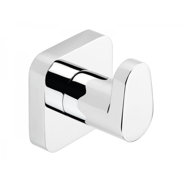 Percha modelo Nuba, diseño con volúmenes redondeados y contornos suavizados de estructura robusta y un acabado en cromo. Esta colección nos presenta una serie de accesorios ideales para dar a su baño un toque actual y personal en ambientes de baño modernos y minimalistas. fabricado en latón cromado. 5 x 5 x 4,5 cm