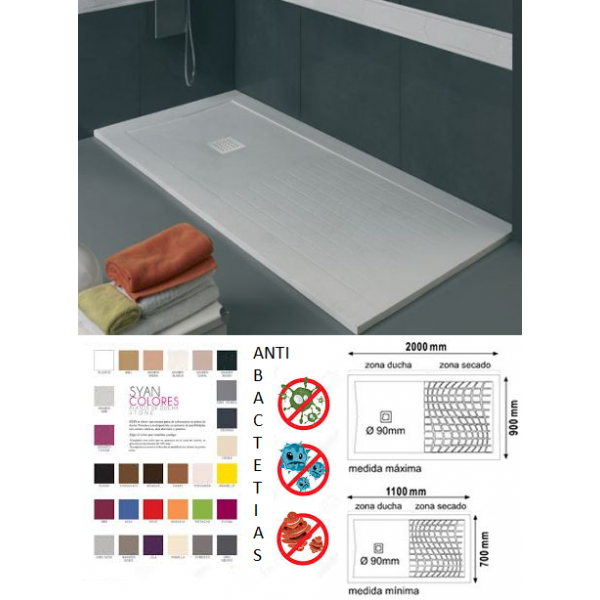 Syan nos pone a su alcance platos de ducha innovadores, antideslizantes y extraplanos que hacen que la ducha sea mas sencilla y segura. Platos de ducha totalmente a medida en los que el cliente decide, dimensiones, materiales, colores, texturas, etc...se adaptan perfectamente a cualquier cuarto de baño, lo que nos permite crear productos únicos, con diseños más vanguardistas y con las mayores prestaciones