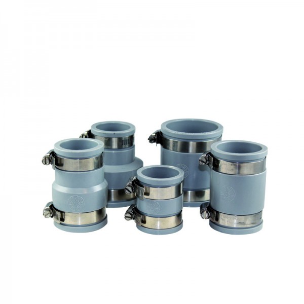 Permite la unión de diferentes tipos de tuberías y diámetros gracias al racor de PVC flexible.