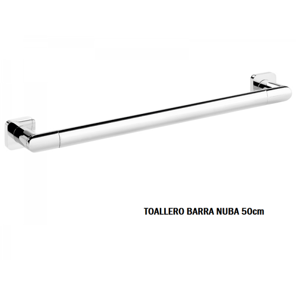 Toallero barra grande modelo Nuba, diseño con volúmenes redondeados y contornos suavizados de estructura robusta y un acabado en cromo. Esta colección nos presenta una serie de accesorios ideales para dar a su baño un toque actual y personal en ambientes de baño modernos y minimalistas. fabricado en latón cromado. 50 x 5 x 7.5 cm