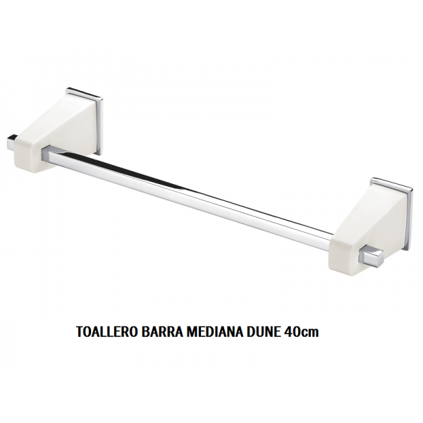 Toallero barra mediana Dune, fabricado en Laton Cromado, Resina Solid Surface, Zamak, acabado Cromo/Blanco