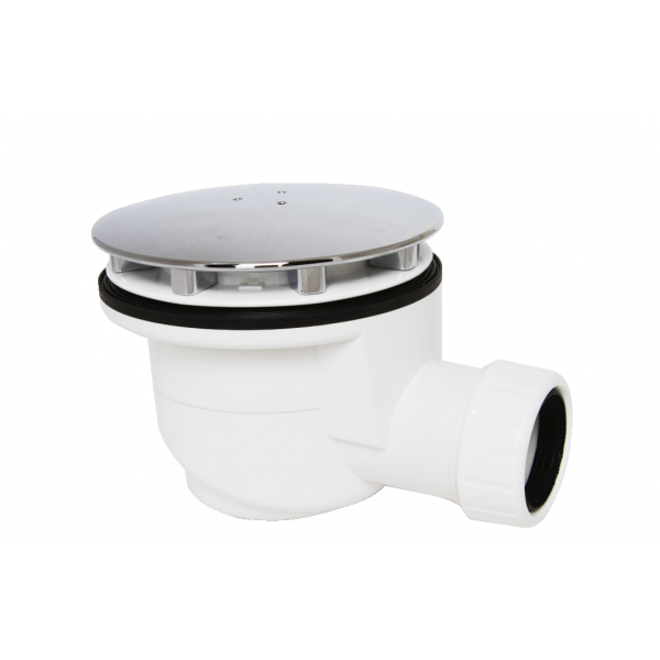Válvula ducha, altura 83 mm capacidad desagüe 34 l / m Salida horizontal con rosca. Tapa lisa Acero Inoxidable. 701052 1” ½ x 90 mm chapa 120mm
